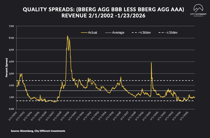 Investment-grade spreads are tight at 94 basis points this week. The long-term average is 1.56%.