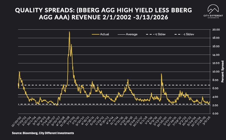 For our readers, bonds are doing what bonds are supposed to do: pay you more than inflation. The real yield on the 10-year Treasury today is approximately 118 basis points. The 10-year is offering 4.28% in a world where core PCE is running at 3.1%. You are being paid above inflation to own duration — right now, today, with no heroic assumptions required. The long-term average real yield on the 10-year Treasury is 186 basis points. We are below that average, which means rates could move higher from here and the fundamental value proposition of owning fixed income would remain intact. This is not a crisis environment for bond investors. It is, by the numbers, a reasonably compensated one.