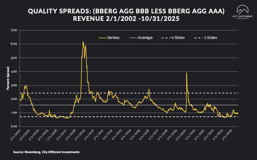 Last week's 10-year quality credit spread between BBB revenue and AAA general obligation bonds was at 0.92% versus a historical average of 1.68%, demonstrating very healthy and tight spread metrics.