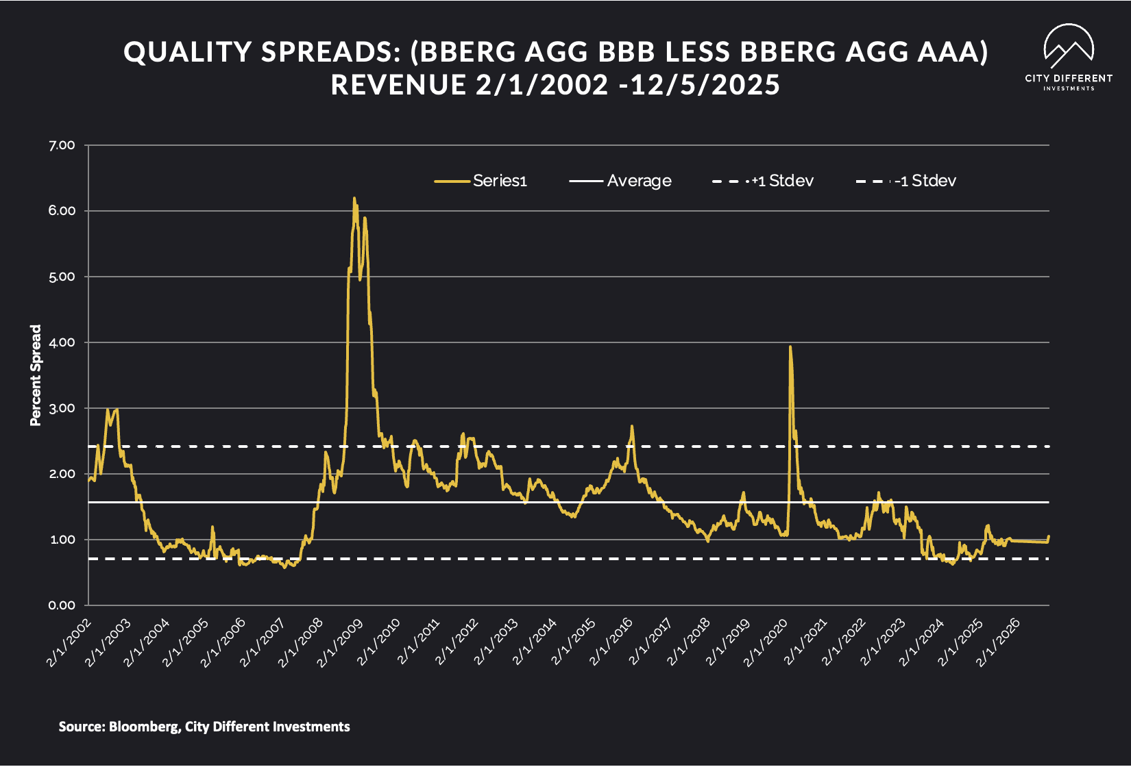 The economic picture remains somewhat unclear due to the delay in government statistics resulting from the government shutdown. The shutdown and its resolution also impacted consumer behavior and outlooks. The Fed has its December meeting this week. The market implied probability of a 0.25% rate cut is over 90%. Voting member sentiment is mixed, at least according to the Wall Street Journal article referenced earlier. Chair Powell’s term is up in May. The market is building a higher implied probability of subsequent rate cuts for later in 2026. Our crystal ball gets very cloudy looking that far into the future.